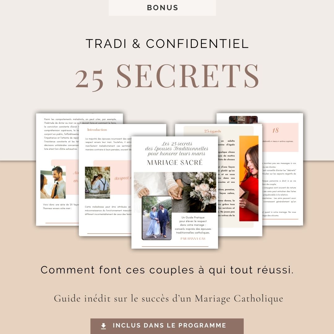 1. Un module sur le couple dans la chambre à coucher : les secrets des couples tradi pour pimenter leur vie amoureuse sans malaise ou compromission de valeurs.